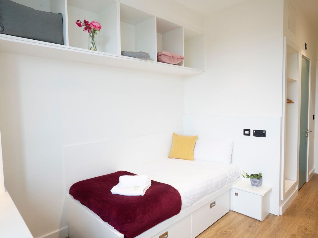 Apartments contain 4-6 individual bedrooms as well as a shared kitchen and comfortably furnished living area. A mix of single and double bedrooms are available. All bedrooms have an en suite bathroom and are furnished with built-in storage and a study desk.